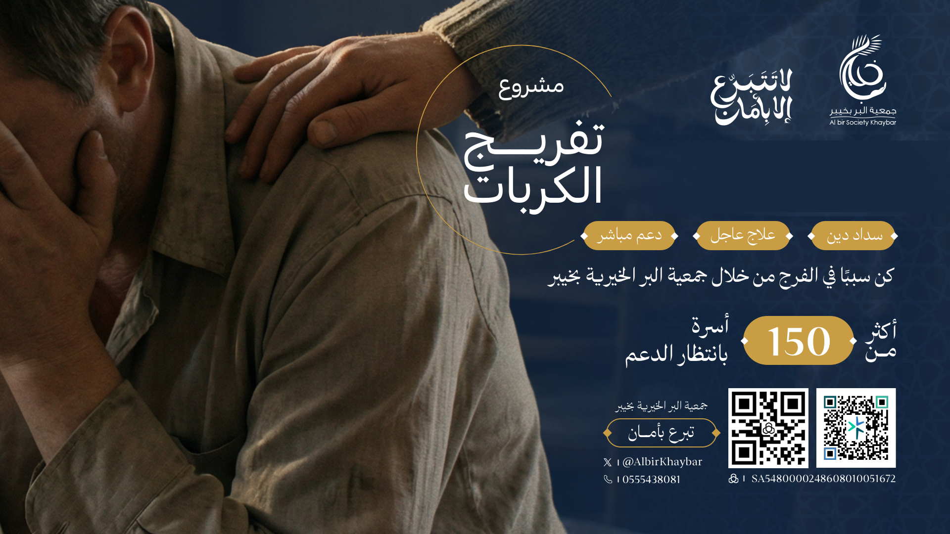 انطلاقًا من رسالتها الإنسانية وحرصها على مساندة المحتاجين، تقدم جمعية البر الخيرية بمحافظة خيبر مشروع تفريج الكربة، أحد أهم مشاريعها الخيرية التي تهدف إلى مساعدة الأفراد والأسر في تجاوز الأزمات الطارئة وتخفيف معاناتهم في أوقات الشدة.